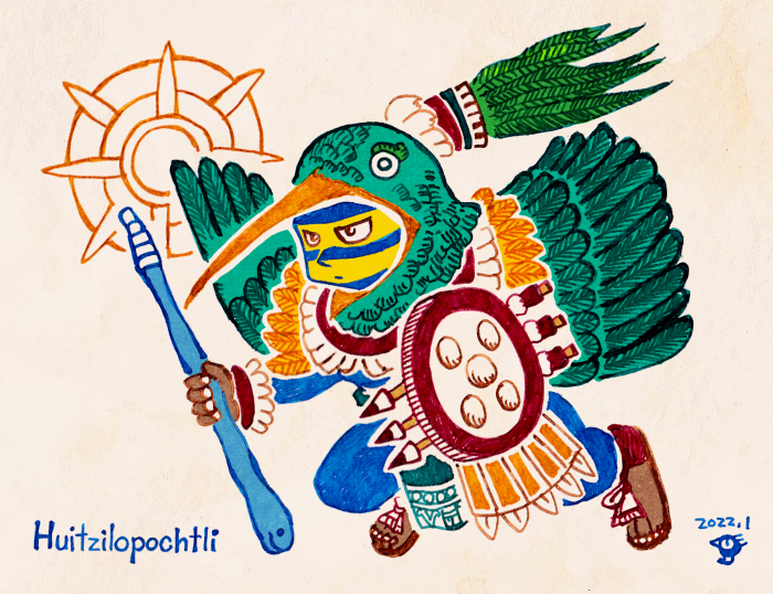 ボルボニクス絵文書をベースにして描いてみたウィツィロポチトリさん。