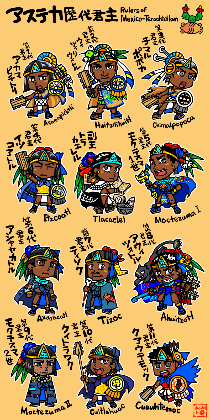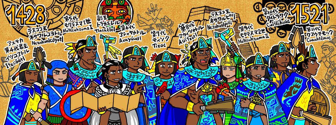 こちらの記事は、アステカ帝国の君主(トラトアニ)や、歴史上の人物のイラストです。