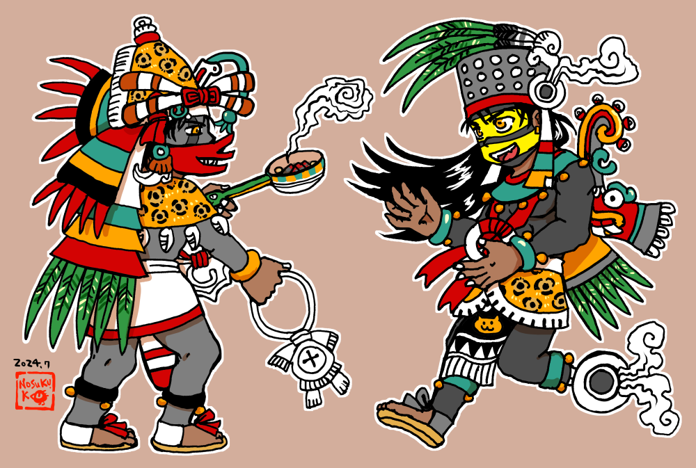 2024年制作。参考:ボルボニクス絵文書。おとなりはテスカトリポカ神。