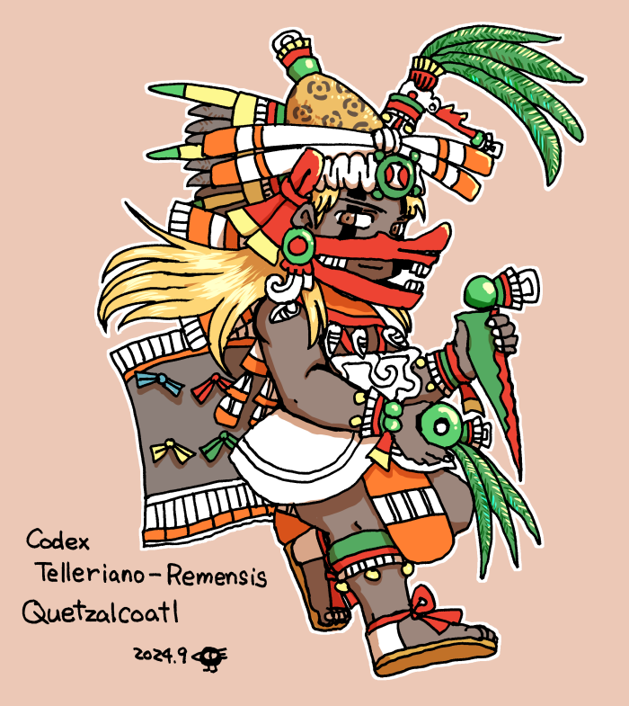 10世紀ごろ(?)、トルテカの都トゥーラ(トラン)を治めたという、伝説の神官王ケツァルコアトル(セ・アカトル・トピルツィン・ケツァルコアトル)。