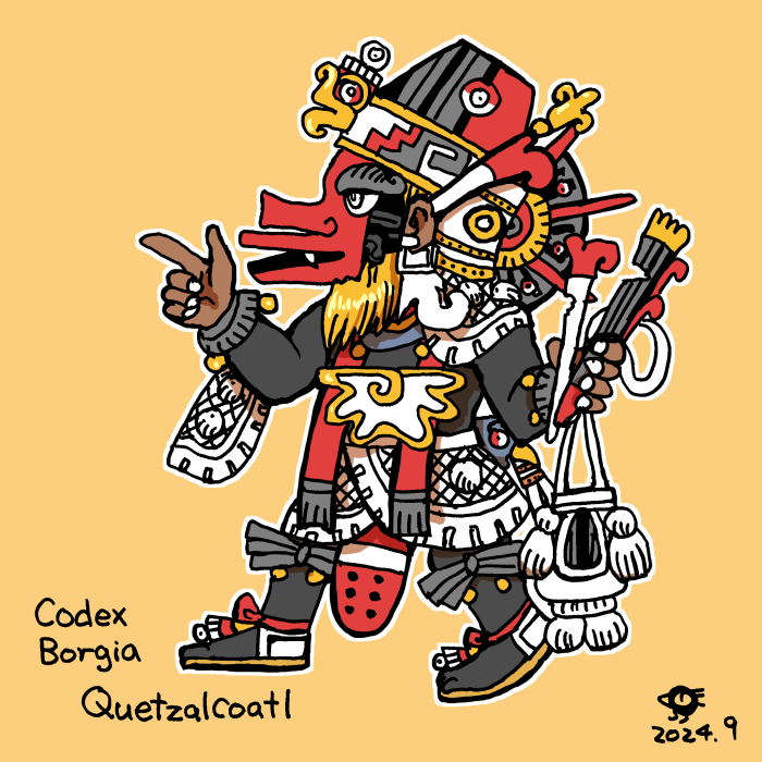 昔の絵文書をベースにして描いたケツァルコアトルの絵も載せていきます。